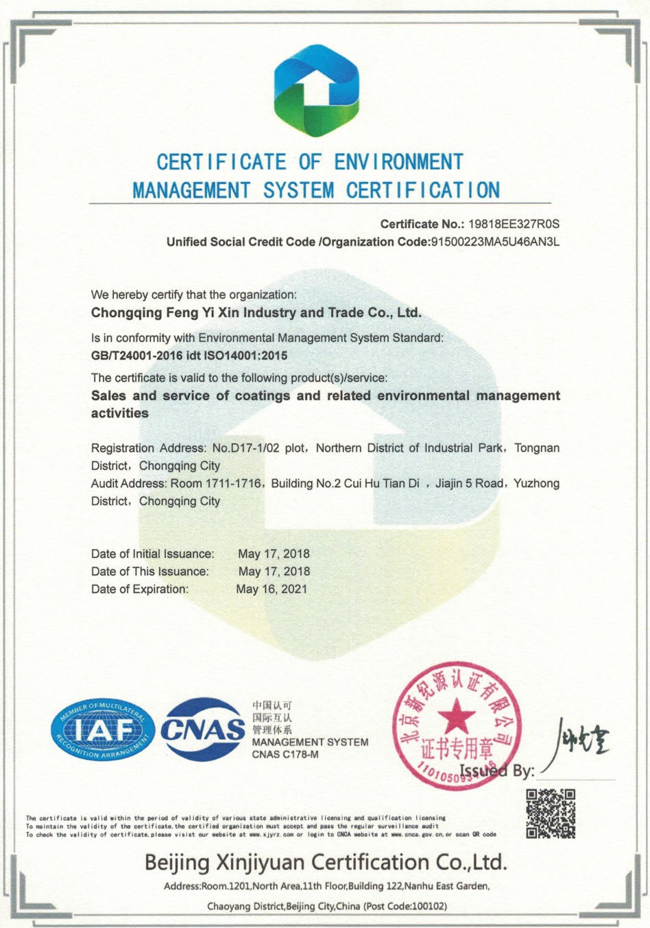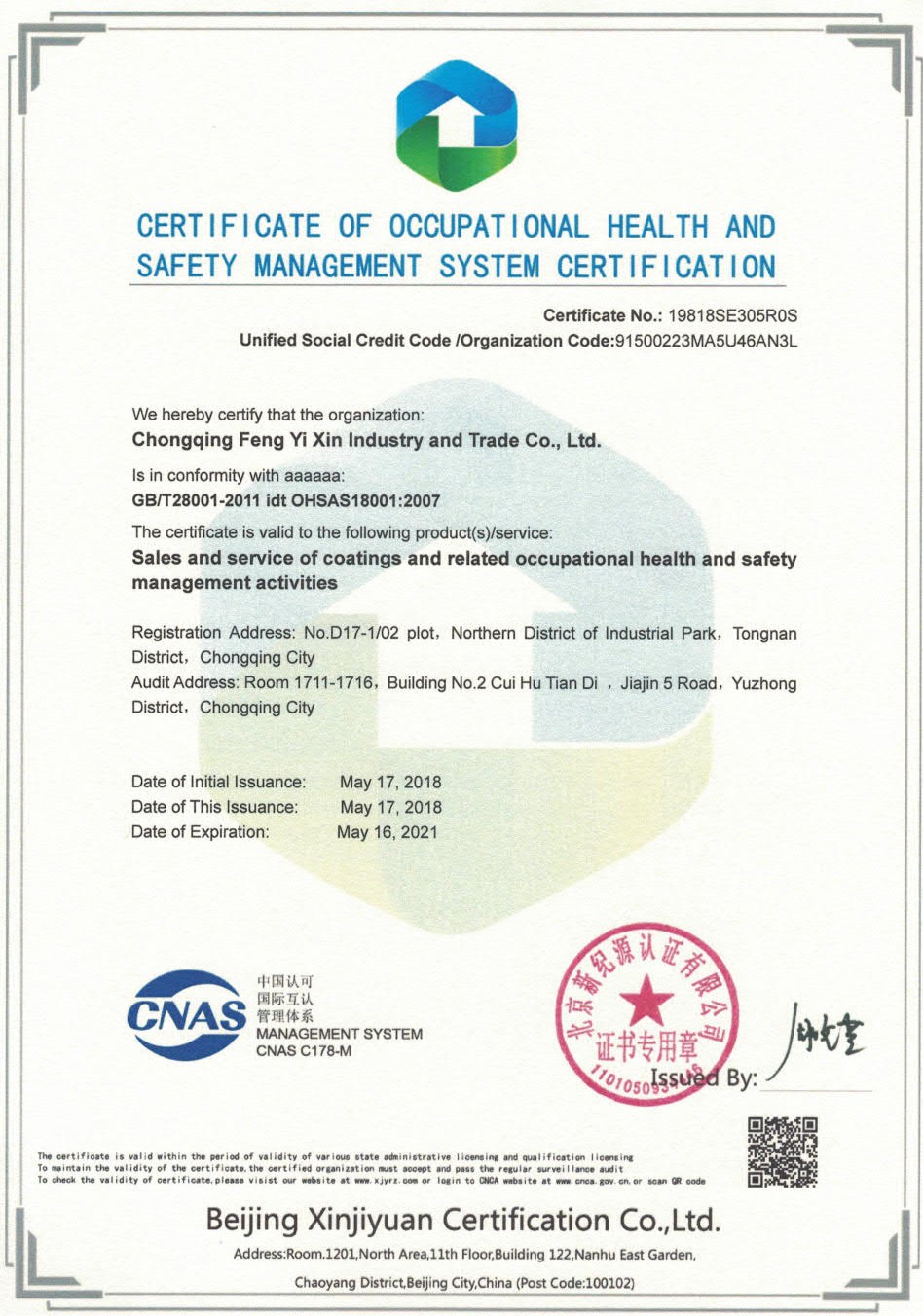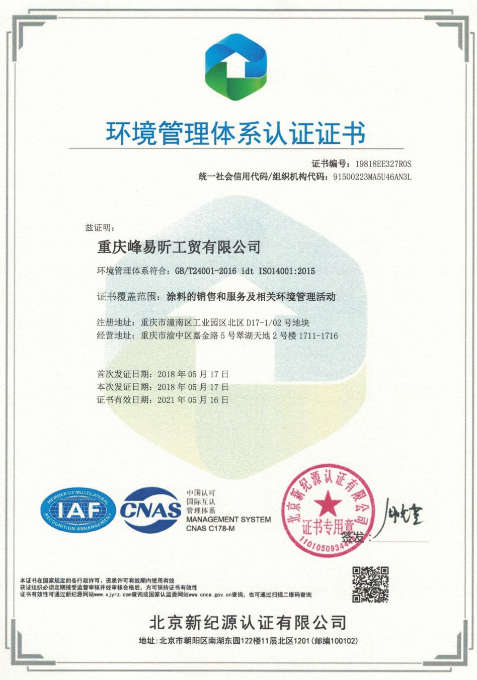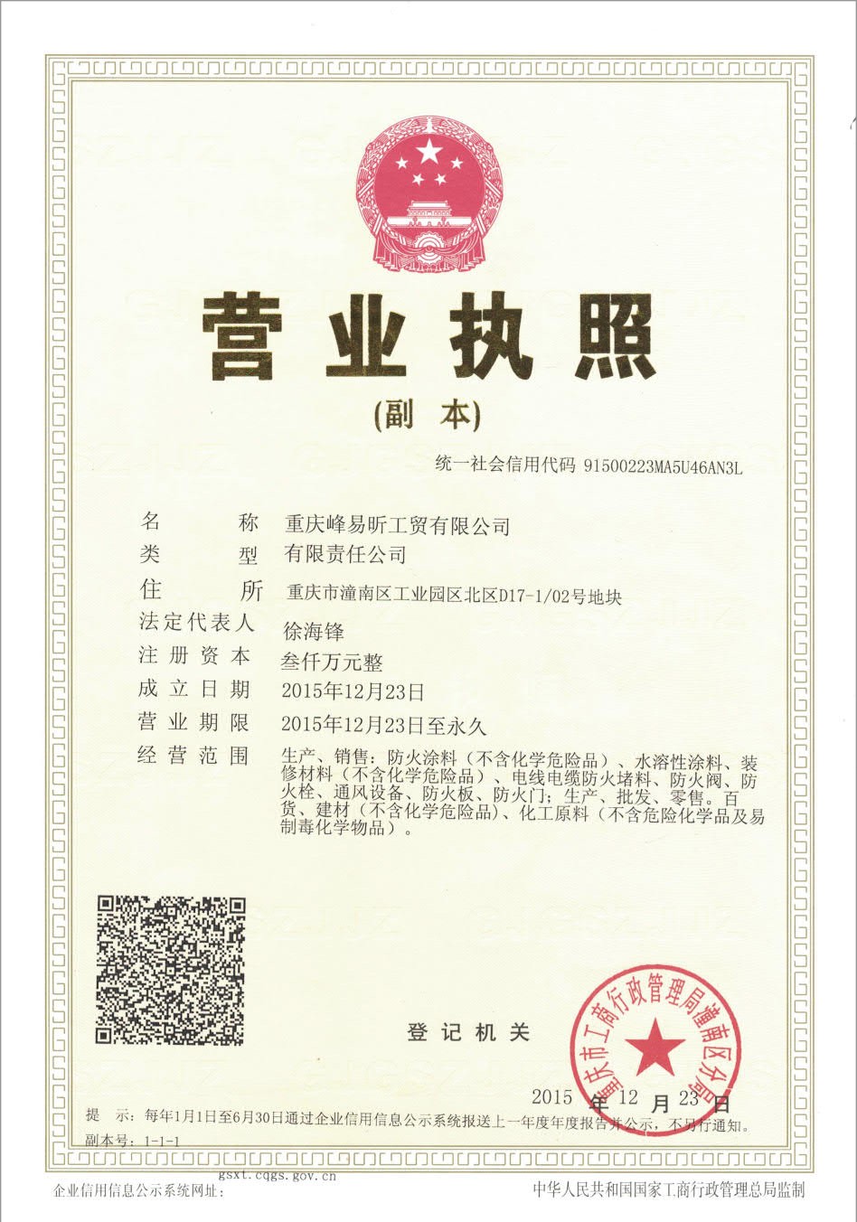 • 熱烈祝賀重慶峰易昕工貿有限公司